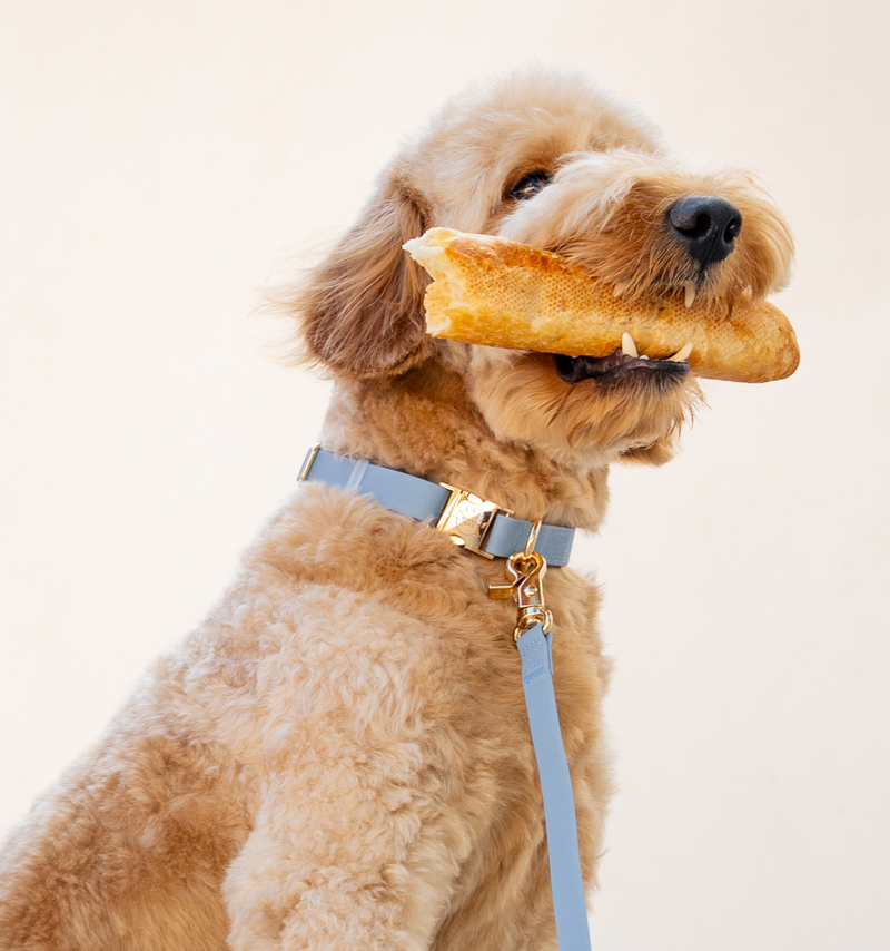 Meet the Cloud Collar — waterproof, lightweight, buttery soft, and odor-resistant. Crafted with our all-weatherproof webbing tested to withstand up to 750 pounds of pull, it's quick-drying and wipes clean in seconds. Perfect for dogs who swim, hike, or play outdoors year-round. An ultra-smooth finish prevents matting and reduces friction on fur, so it's gentle on longer coats and sensitive skin. Finished with a luxe light gold rust-resistant quick-release buckle.